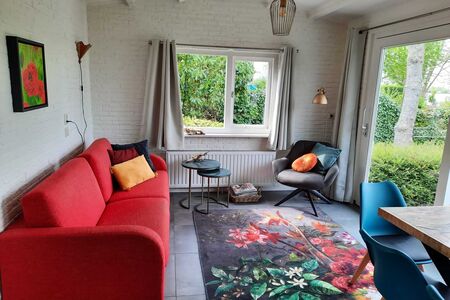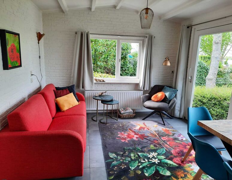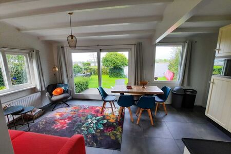 - woonkamer met zithoek, schuifpui naar terras, eethoek en 2-pers. slaapbank